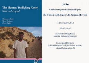Il rapporto di Meron Estefanos Miijam van Reisen e Conny Rijken sarà presentata l’11 dicembre prossimo, alla presenza Alganesh Fessaha (dell’organizzazione non governativa Ghandi, nonché vincitrice dell’Ambrosino d’Oro 2013), don Moussi Zerai , presidente dell’agenzia Habeshia e la presidente della Camera dei deputati Laura Boldrini. Ma non solo in Italia: anche a Tel Aviv, al Cairo, ad Addis Abeba, a Londra, New York, Washington. Per il nostro Paese è previsto un secondo incontro a Lampedusa, simbolo della speranza per migliaia di profughi.