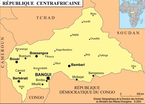 ob_4caa82_carte-centrafriqueLa crisi dell’ex colonia francese comincia alla fine del 2012: il presidente François Bozizé dopo essere stato minacciato dai ribelli Séléka (il maggioranza musulmani) alle porte di Bangui, chiede aiuto all’ONU e alla Francia. Nel marzo 2013 Michel Djotodia, prende il potere, diventando così il primo presidente di fede islamica (nonostante il nome) del Paese. Dall’ottobre dello stesso anno i combattimenti tra i cristiano animisti anti-balaka  e gli ex-Séléka si intensificano e lo Stato non è più in grado di garantire l’ordine pubblico, Francia e ONU temono che la guerra civile possa trasformarsi in genocidio. Il 10 gennaio 2014 Djotodia presenta le dimissioni e il giorno seguente parte per l’esilio in Benin. Il 23 gennaio 2014 viene nominata presidente del governo di transizione Catherine Samba-Panza, ex-sindaco di Bangui.