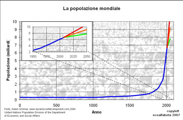 Nel 1990 la popolazione mondiale ammontava a 5,3 miliardi. Oggi è salita a 8,5 e nel 2050 si attesterà su 9,7 per arrivare, nel 2100, a ben 11,2 miliardi di abitanti. Cifre da capogiro se si pensa che all’inizio del secolo scorso il numero mondiale degli abitanti non raggiungeva i due miliardi. E’ stimato che le risorse naturali del pianeta, benché non ancora totalmente sfruttate (soprattutto in campo agricolo) non saranno più in grado di fornire l’alimentazione essenziale a chi lo abita. Per quanto riguarda l’acqua – elemento vitale, sia per l’utilizzo domestico, sia per quello agricolo e animale – la sua drammatica mancanza si sta già avvertendo da diversi decenni.