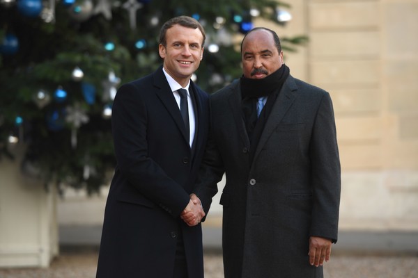 Emmanuel Macron, presidente francese a sinistra e Mohamed Ould Abdel Aziz, presidente della Mauritania, a destra