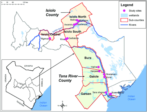 Mappa della contea del Tana River dovo sono stati fermati Marco Duina e Jessica todaro