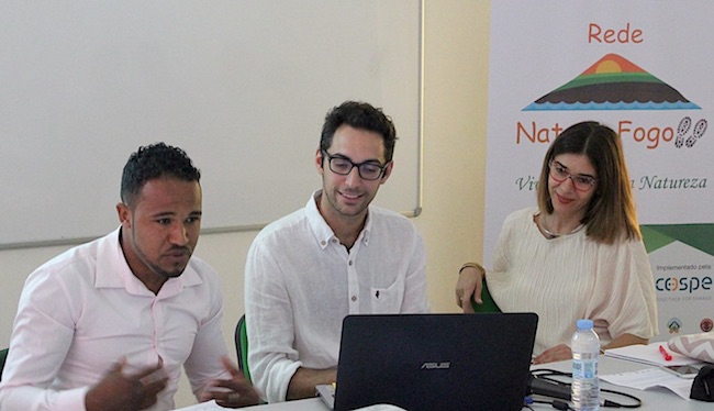 Nel centro della foto David Solazzo nel suo ufficio a Fogo (Courtesy COSPE)