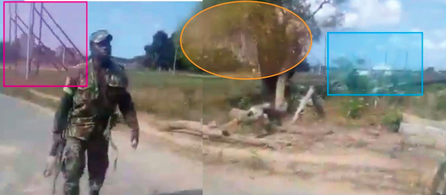 Pare difficile però davanti alle analisi del Crisis Evidence Lab (Laboratorio di evidenza delle crisi) di Amnesty International. Secondo l’inchiesta i soldati indossavano l’uniforme delle FADM. La relazione dell’ong conferma che un militare ha la caratteristica mostrina gialla e nera sulla spalla, come si vede nell’immagine di Amnesty. Inoltre, la maggior parte dei soldati indossa l’uniforme completa, escluso l’artigliere con il PKM con la maglietta rossa al posto di quella mimetica standard.