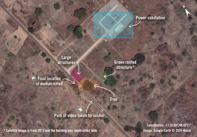 I soldati parlano tutti portoghese, lingua ufficiale del Mozambico e quindi delle sue Forze armate. Grazie all’analisi del filmato, Amnesty ha individuato anche il luogo dell’esecuzione della donna: Awassa, Cabo Delgado, poco distante da Mocimboa da Praia, luogo eletto dell’occupazione jihadista. E ne mostra anche una mappa satellitare.