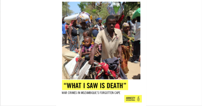 Le accuse della ong per i diritti umani sono raccolte in un dossier: ”Ho visto solo la morte. Crimini di guerra nel Capo dimenticato del Mozambico”. In 44 pagine Amnesty analizza la guerra a Cabo Delgado e mette all’indice i colpevoli di quella immane tragedia. Un dramma che fino ad oggi conta oltre 2.500 morti, 670 mila profughi, la distruzione di decine di villaggi e varie epidemie di colera. Un’intera provincia sotto scacco jihadista, miliziani combattuti in modo molto discutibile, dalle FADM e da mercenari sudafricani.