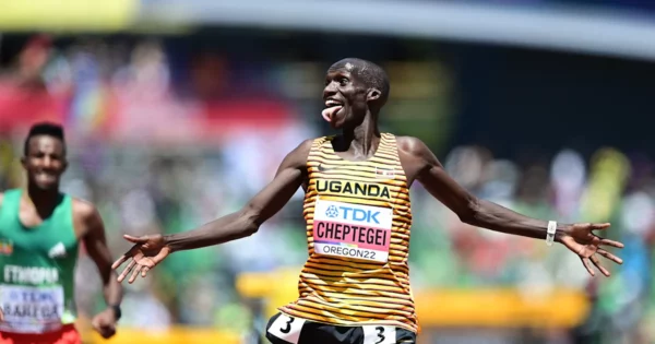 Agli squilli, allo strapotere dell’Etiopia nei primi giorni di questi Mondiali di atletica, ha risposto in modo stupefacente, ma non a sorpresa, l’Uganda: Joshua Kiprui Cheptegei, 26 anni, ha stravinto la finale dei 10 mila metri e ha fatto il bis dopo l’oro conquistato a Doha del 2019. Alle spalle di Cheptegei, poliziotto laureato in lingue, (https://www.africa-express.info/2020/08/17/notte-di-ferragosto-da-campione-per-poliziotto-corridore-ugandese-batte-record-sui-5mila-metri/), secondo di 9 figli, nato e cresciuto nel distretto orientale di Kapchorwa, si è piazzato il kenyano Stanley Waithaka Mburu, 22 anni, mentre la medaglia di bronzo è andata al collo di un altro ugandese, Jacob Kiplimo, di appena 21 anni.