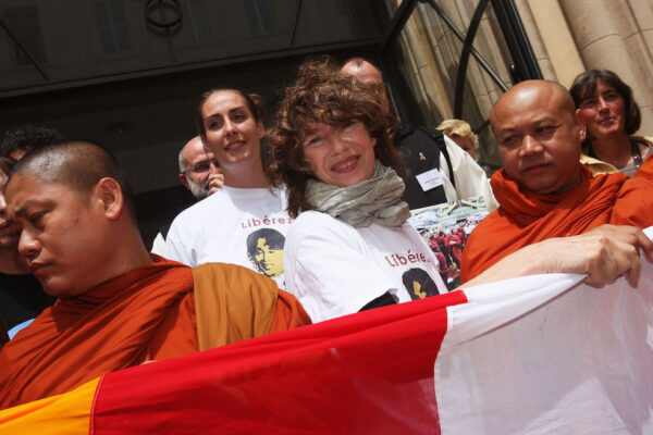Jane Birkin con monaci buddisti