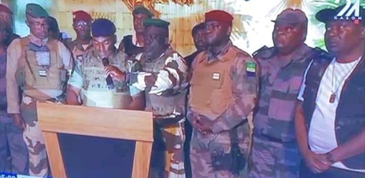 Come si è potuto osservare in TV, il comitato dei golpisti è composto da membri della Guardia Repubblicana (GR), della guardia pretoriana della presidenza, riconoscibili dai loro berretti verdi, oltre a militari dell’esercito regolare e agenti di polizia. La dichiarazione della presa del potere è stata trasmessa anche dall’emittente pubblica Gabon Première.