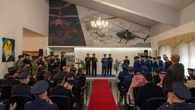 Proprio a Frosinone il 30 ottobre 2023 l’Aeronautica italiana ha “diplomato” quattro frequentatori della Royal Saudi Air Force. “I giovani piloti hanno svolto un lungo periodo di formazione in Italia, presso il Centro Aviation English di Loreto, successivamente presso il 70° stormo di Latina per il brevetto di pilota di aeroplano e la fase II – PrimaryPilot Training (finalizzata alla individuazione delle linee su cui saranno impiegati – fighters, pilotaggio remoto RPA, elicotteri, trasporto) presso il 61° stormo”, aggiunge lo Stato Maggiore. “Dopo la fase II, i piloti idonei per le linee elicotteri o trasporto, vengono indirizzati rispettivamente presso il 72° stormo di Frosinone dove si svolge la fase addestrativa sugli elicotteri TH500B e UH-139; oppure presso il CAE MultiCrew di Pratica di Mare utilizzando il velivolo P180 Avanti e il simulatore di volo statico AL-SIM”.
