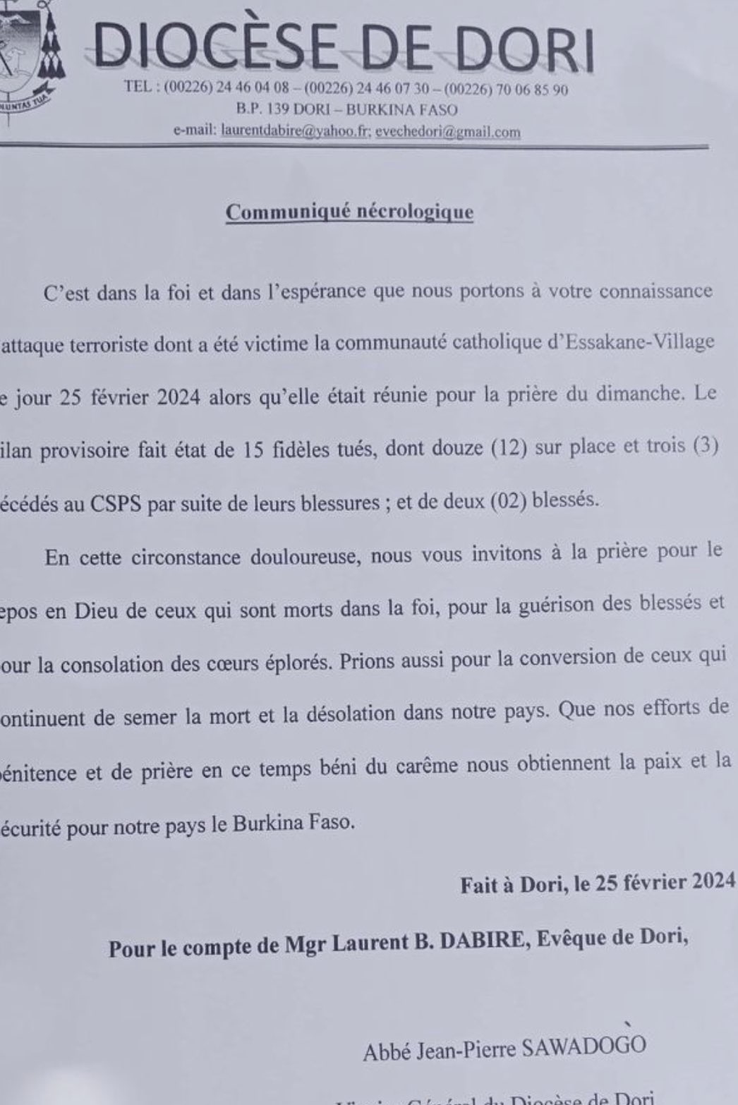 Lo scorso fine settimana è stato nuovamente caratterizzato da sanguinarie aggressioni. I miliziani non hanno risparmiato musulmani e tantomeno cristiani. Domenica, 25 febbraio, un gruppo di uomini armati ha attaccato la chiesa di Essakane, villaggio situato nel nord del Paese, mentre il sacerdote stava officiando la Messa domenicale. Il bilancio provvisorio è di 15 fedeli morti – tra loro 12 sul posto – mentre altri tre sono deceduti in un centro sanitario di prima assistenza, in seguito alle gravi ferite riportate durante il vile attacco. Altre due persone sono ancora in ospedale.