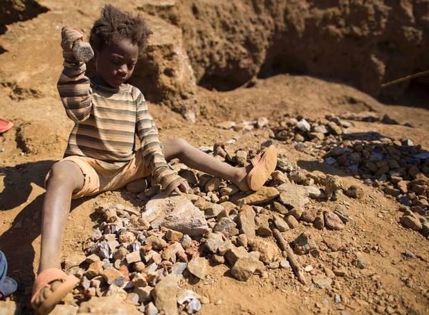 Raggiungere la miniera è complicato ma non impossibile. In realtà si tratta di giacimenti a cielo aperto. Immense pietraie scure brulicano di disperati cotti dal sole tropicale che frantumano a martellate rocce e sassi fino a ridurli in polvere. Coprono poi tutto con acqua e nel fango, a colpi di vanga, separano il Coltan, molto pesante, dal resto.