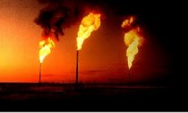 Nelle foto il gas che si produce assieme al petrolio viene bruciato alla cima di alte ciminiere che appestano l’aria ovunque.