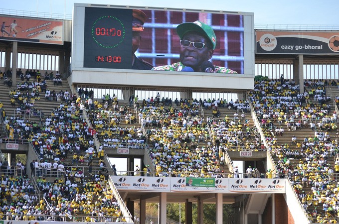 Allo stadio con gigantografia Mugabe