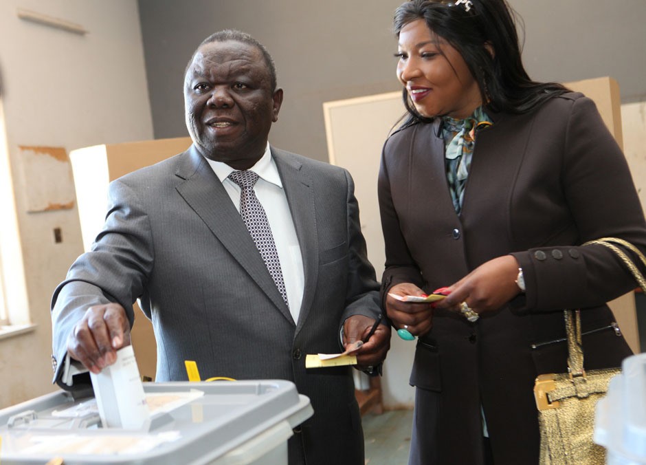 Zimbabwean Prime Minster Morgan Tsvangirai and his wife Elizabeth Macheka cast their votes in Harare, Wednesday, July, 31, 2013. Zimbabweans voted Wednesday in the elections that will determine the future of longtime President Robert Mugabe, who has denied allegations of vote-rigging despite concerns about the credibility of the polls. (AP Photo/Tsvangirayi Mukwazhi)