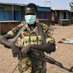 MDG : a rebel fighter stands in front of Kali-Ballee mosque, Bentiu, South Sudan