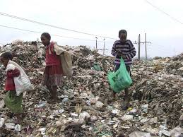 A Nairobi non c’è la raccolta differenziata: i riciclatori lavorano in discarica. Gente che, a mani nude, raccoglie le bottiglie, le frantuma su una pietra e vende il vetro sminuzzato, o si occupa della carta, delle lattine o della plastica.