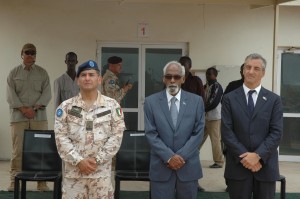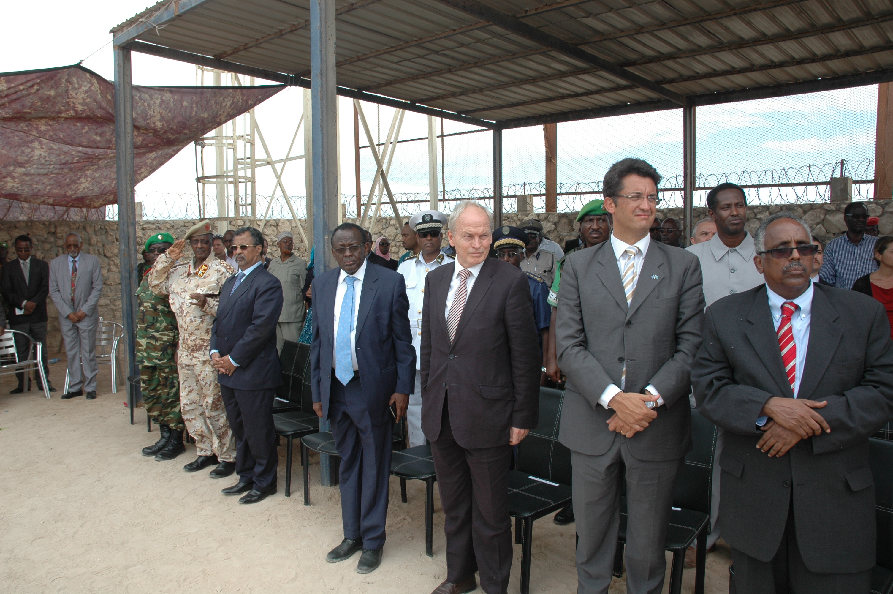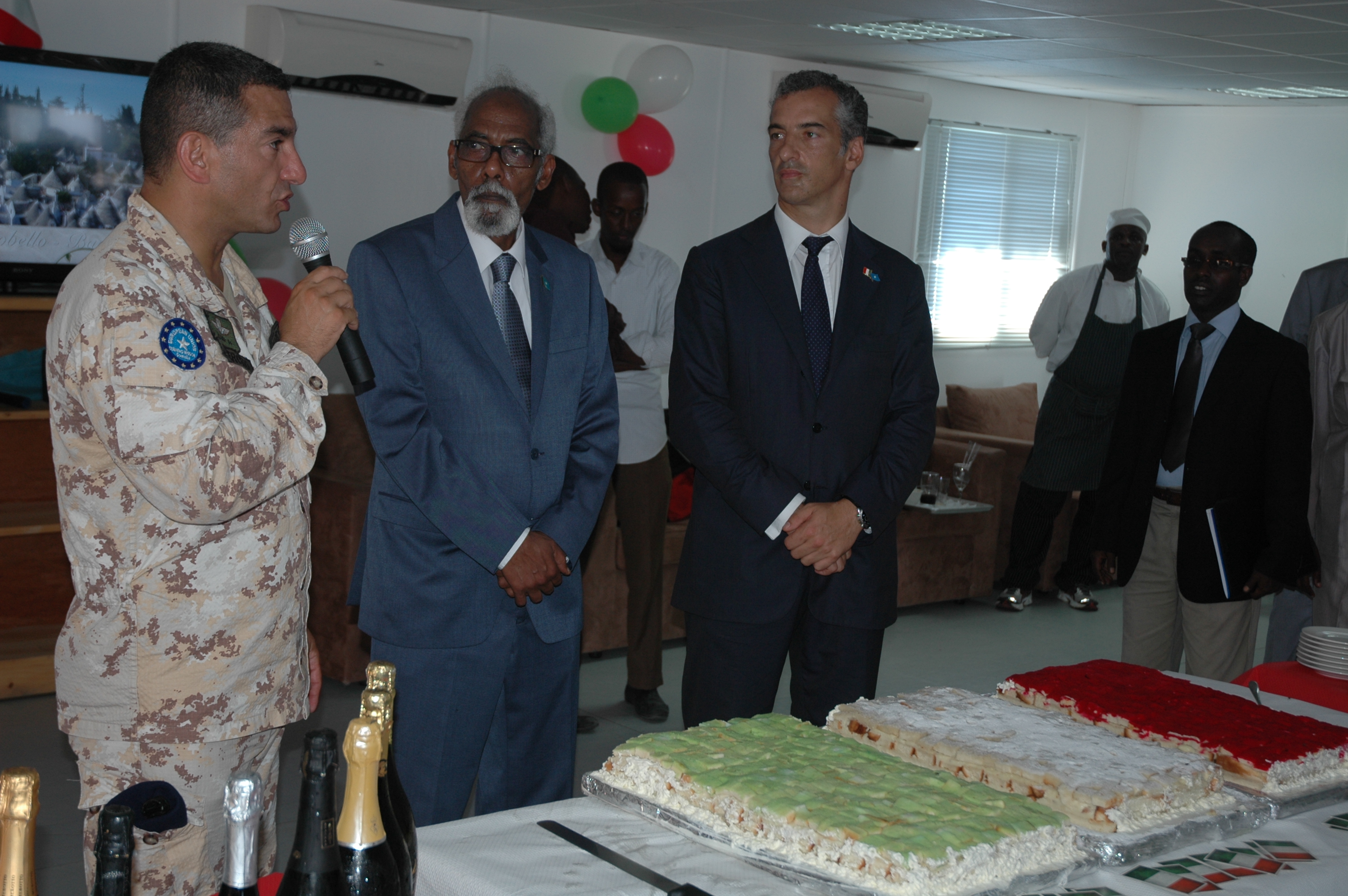 Le foto di Massimo Alberizzi sono state scattate alla festa del 2 giugno nel quartier generale del contingente dell’Unione Europea a Mogadisci, dall’alto: militari schierati di fronte alla bandiere italiana, europea e somala; il generale di brigata Massimo Mingiardi, un parà di guardia, Alessandra Morelli, responsabile dell’UNHCR a Mogadiscio e il generale Mingiardi, primo piano del delegato dell’Unione Europea (cioè l’ambasciatore) per la Somalia, l’italiano Michele Cervone, il colonnello Bernardo Mencaraglia legge il messaggio del presidente della Repubblica Giorgio Napolitano, l’ambasciatore italiano Andrea Mazzella, due immagini dei parà italiani schierati, Il presidente del Parlamento somalo, Mohammad Sheick Osman Jawari, Mingiardo con Jawari e Mazzella, personalità che assistono alla cerimonia, l’inglese Nicholas Kay, rappresentate speciale di Ban-Ki Moon per la Somalia, infine di nuovo Mazzella e Jawari e poi il generale, Jawari e Mazzella