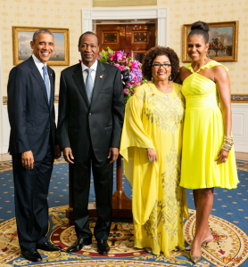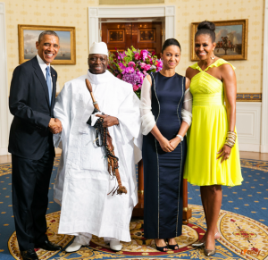 Alcune delle foto ricordo scattate alla Casa Bianca da Barak e Michelle Obama. Dall’alto: Teodoro Obiang e la moglie, il nigeriano Goodluck Jonathan, i gabonesi Ali e Sylvia Bongo, l’omofono presidente del Gambia Yahya Jammey, famoso per saver dichiarato “se trovo un gay lo ammazzo con le me mani”, Paul Kagame e l’altissima figlia. Infine Blaise Campoarè, salito al potere dopo aver strangolato con le sue mani il suo migliore amico, il presidente del Burkina Faso Thomas Sanksrà, di cui era il vice.