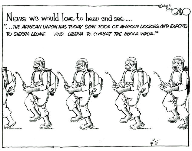 cartoonNigeria has won praise from the international community for its response to the outbreak. While Ebola continues to burn in Liberia, Sierra Leone and Guinea, in Nigeria it appears to have been contained with only 21 confirmed cases and eight deaths – with the last case reported on 8 September and tracing having proven effective. [ http://www.afro.who.int/en/clusters-a-programmes/dpc/epidemic-a-pandemic-alert-and-response/outbreak-news/4279-evd-outbreak-20-september-2014.html ]