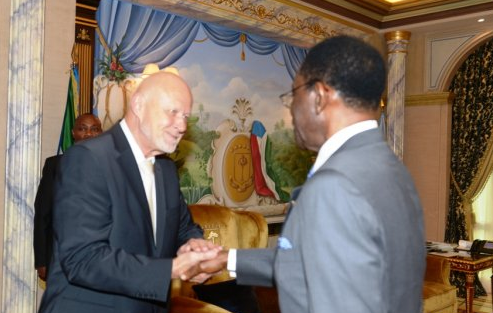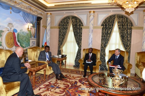Nella seconda e terza foto il dittatore Teodoro Obiang e l’ambasciatore russo a Malaboย Nikolay Ratsi Borinskty