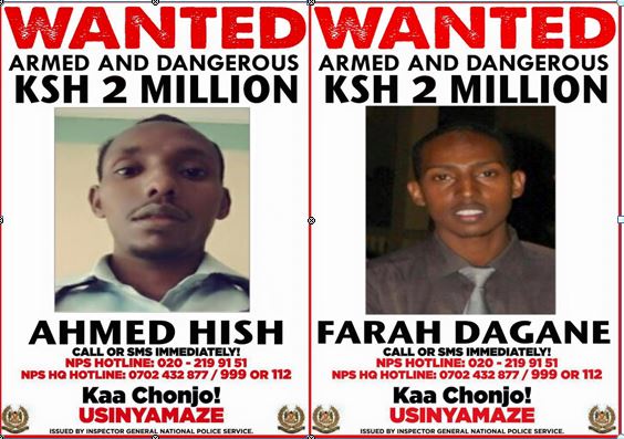 Sulla loro testa è stata posta la taglia di 2 milioni di sterline (20 mila euro). La foto segnaletica è stata distribuitas in giro per tutto il Kenya. Assieme alla raccomandazione di fornire tutte le informazioni possibili e i movimenti sospetti.
