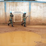 Protesters gather outside MINUSCA headquarters in 2014 following violence in CAR