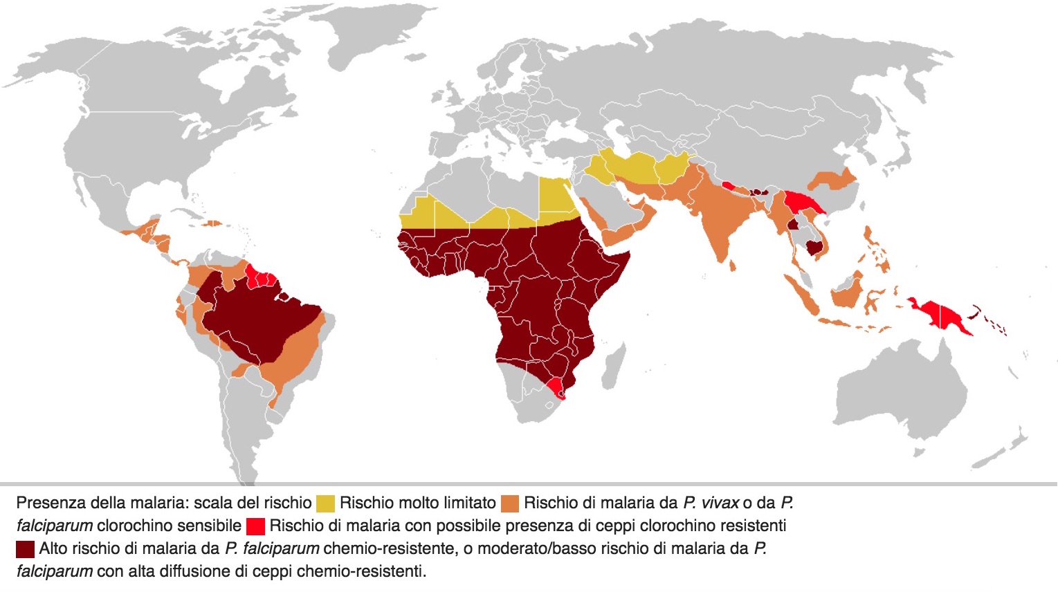 Mappa della malaria nel mondo