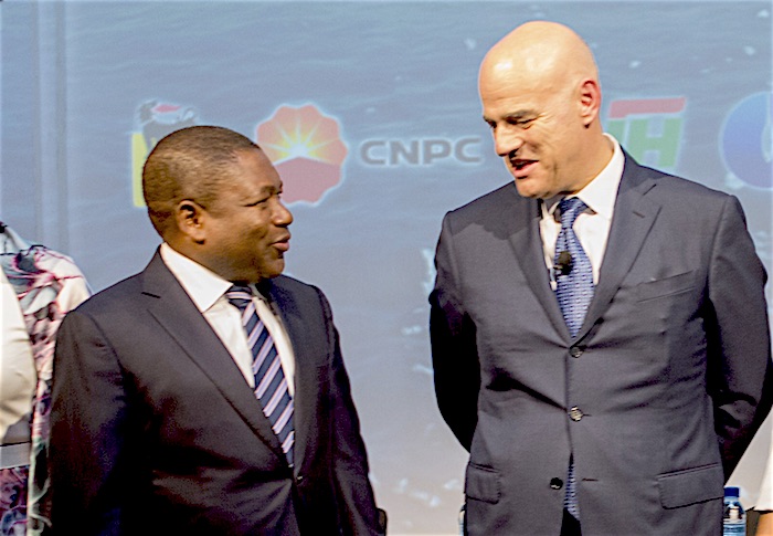 Da sin. il presidente mozambicano Filipe Nyusi e l’ad Eni Claudio Descalzi (courtesy Eni)