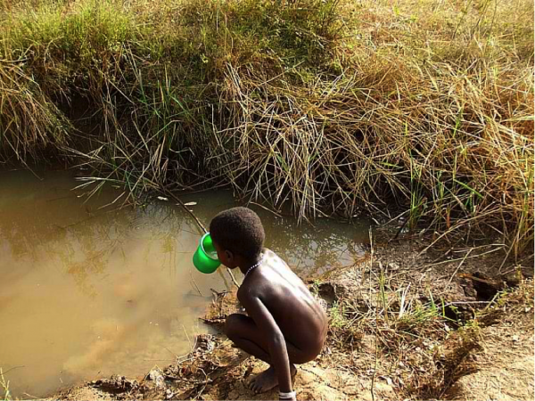 Bimbo beve da pozza