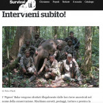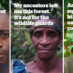 In verde i parchi e le riserve; in rosso le aree di utilizzate per il taglio degli alberi; in rosso a righe le zone dove viene praticata la caccia grossa (courtesy Survival International)