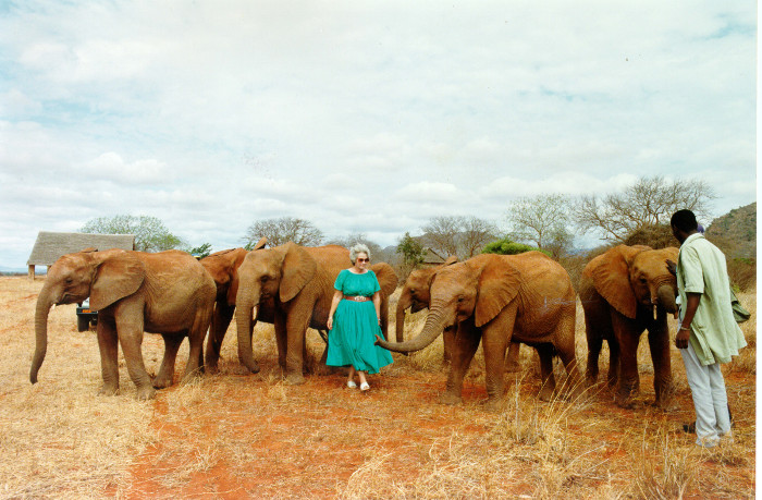 Daphne con i suoi elefantini orfani. ©Copyright The David Sheldrick Wildlife Trust