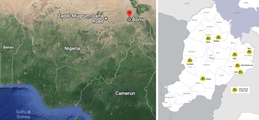 La mappa campi profughi di Borno oggetto del report di Amnesty (courtesy Amnesty International)