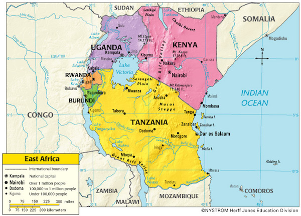 Mappa della regione del Grandi laghi (courtesy nystromworldatlas.com)