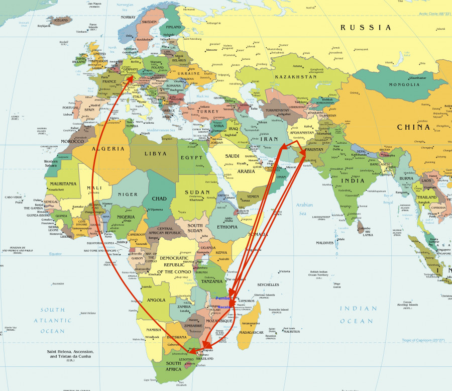 La droga viene trasportata con barche a motore nel nord del Paese nei porti di Nacala, provincia Nampula, e di Pemba, in Cabo Delgado. Via terra e via mare viaggia verso la capitale Maputo fino in Sudafrica, dove da Johannesburg arriva in Europa. Sono stati stimati circa quaranta viaggi all’anno con carichi da una tonnellata di eroina ciascuno.