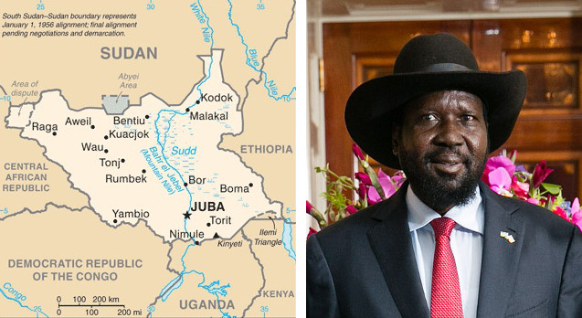Mappa del Sudan del Sud e il presidente Salva Kiir