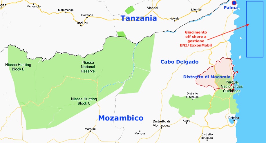 Mappa di Cabo Delgado dell’area dell’attacco jihadista
