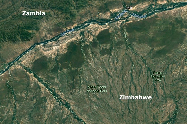 Mappa del Mana Pool National Park in Zimbabwe (Courtesy Google Maps)