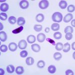 Immagine al microscopio del Plasmodio della malaria (Plasmodium malariae)