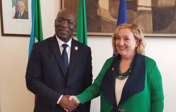 Il ministro degli Esteri equatoguineano Simeon Oyono Esono Angue con la vice ministra degli Esteri Emanuele Del Re