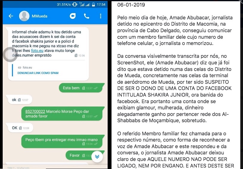 Screenshot e messaggio su Facebook postato da un parente di Amade
