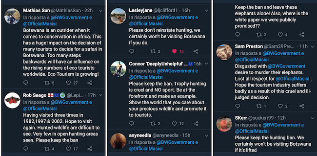 Tweet contro la riapertura della caccia agli elefanti in Botswana