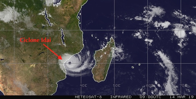 Ciclone Idai accanto alle coste mozambicane (Courtesy Meteosat)