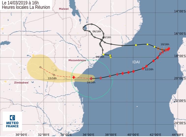 Tragitto del ciclone Idai verso il Mozambico al 14 marzo 2019 (Courtesy Meteo France)