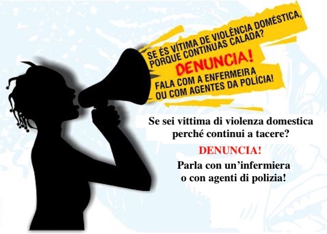 Manifesto che invita le donne mozambicane a denunciare coloro che hanno fatto violenza