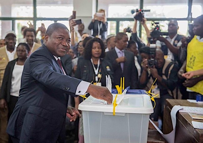 La conferma della vittoria del FRELIMO è sempre più vicina. E, come previsto, Nyusi avrà il secondo mandato alla presidenza della Repubblica. La percentuale esatta della vittoria si avrà a fine mese, quando saranno scrutinati tutte le schede dei 20.162 seggi.