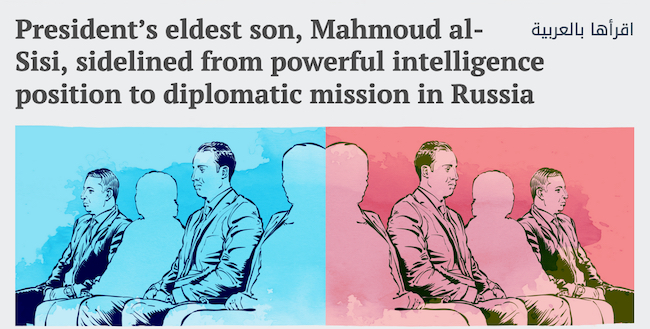 Anche per queste ragioni è meglio che, dal 2020, diventi inviato militare alla missione diplomatica egiziana a Mosca. Un modo per “ampliare gli orizzonti” di Mahmoud. E soprattutto un pesante avvertimento a Mada Masr, ai media indipendenti egiziani e alle loro fonti che trattano della famiglia reale, oh pardon, presidenziale e del governo.