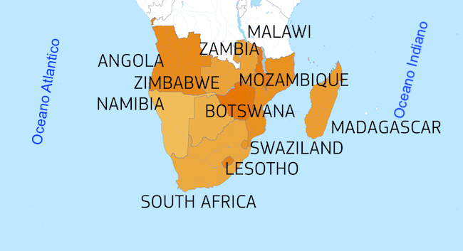 Mappa dei Paesi africani colpiti dalla siccità. Quelli più scuri hanno maggiore bisogno di aiuti umanitari (Courtesy UE)