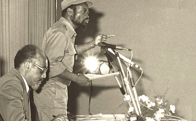 A sin. Marcelino dos Santos e Samora Machel negli anni '80