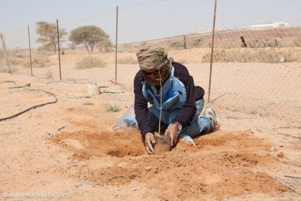 Una delle piante utilizzate nel progetto è l’Acacia Raddiana, una pianta simbolo per il popolo saharawi che può sopravvivere senza acqua per tre anni. Da questa si estrae l’elk, una resina che viene utilizzata come medicinale mentre con il legno si ricavano oggetti tradizionali e le foglie diventano foraggio per gli animali.