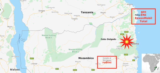 Macomia, occupara dai jihadisti per tre giorni e le aree dei rubini e del gas (Courtesy GoogleMaps)